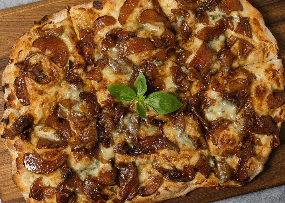 Сливочный соус, фламбированная груша и сыр горгонзола
