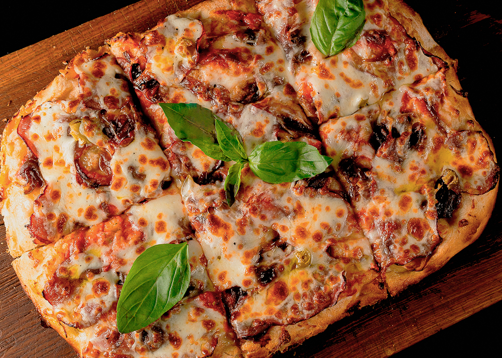 Томатный соус, карамелизированный лук, сырокопчёная говядина, перец халапеньо, сыр моцарелла и пармезан
