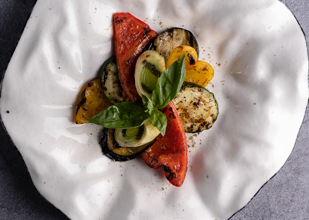 Болгарский перец, цуккини, лук порей, баклажаны.