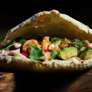 Тесто, брискет, Коул Слоу (капуста краснокочанная, яблоки, морковь, соус айоли (оливковое масло, сок лимона, яйцо куриное, чеснок), мёд, горчица дижонская), чеддер, аджика (томаты, чеснок, перец болгарский, имбирь, кинза, чили, кимчи, кетчуп, яблоки, сахар)