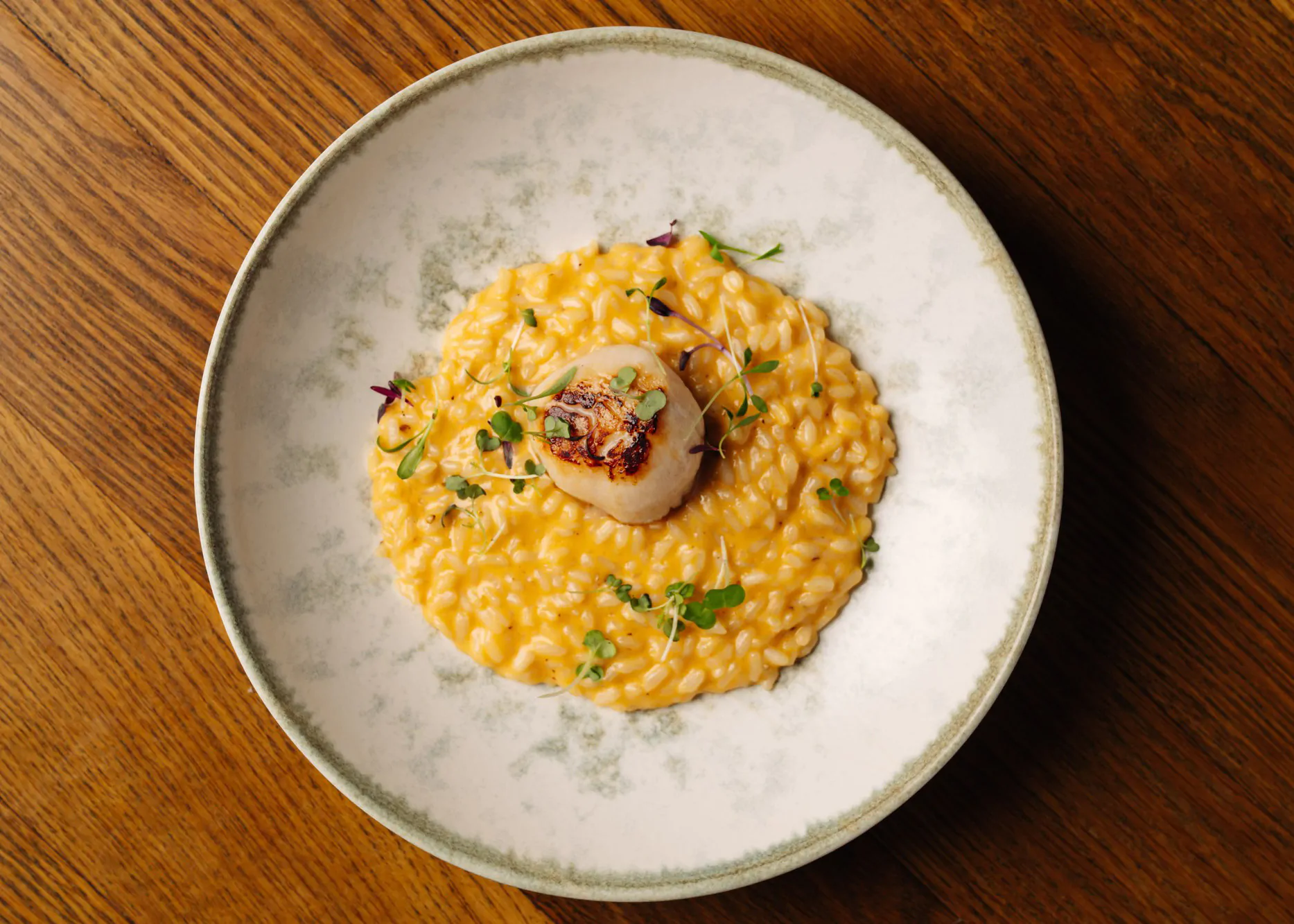 Нежное ризотто с гребешком, грана падано и с трюфельным маслом